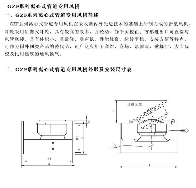 三、GZF系列離心式管道專用風(fēng)機(jī)性能參數(shù)表