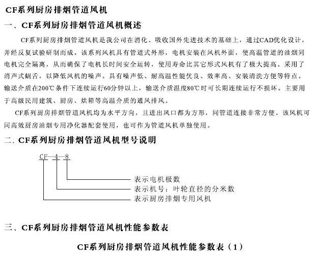 CF系列廚房排煙管道風機性能參數表(2)