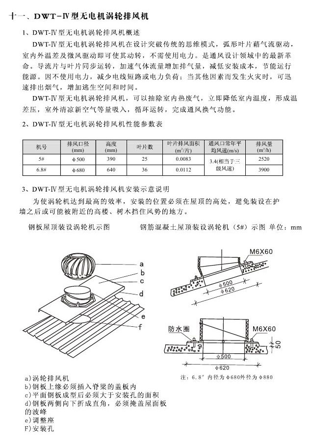 三、DWT-I型軸流式屋頂風(fēng)機(jī)性能參數(shù)表